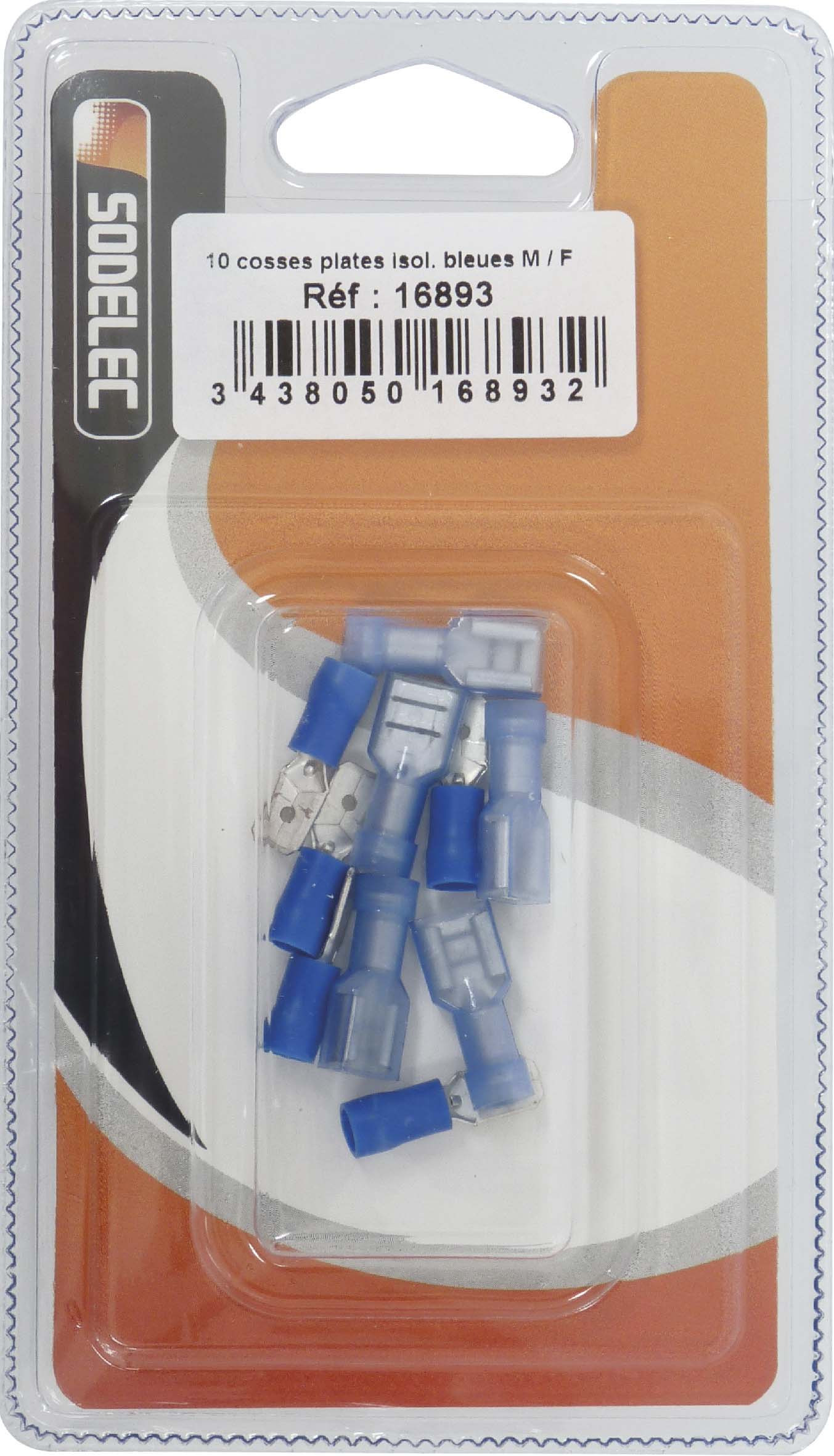 Découvrez 10 cosses plates isolees bleues m/f SODELEC - 16893 disponible à l'achat