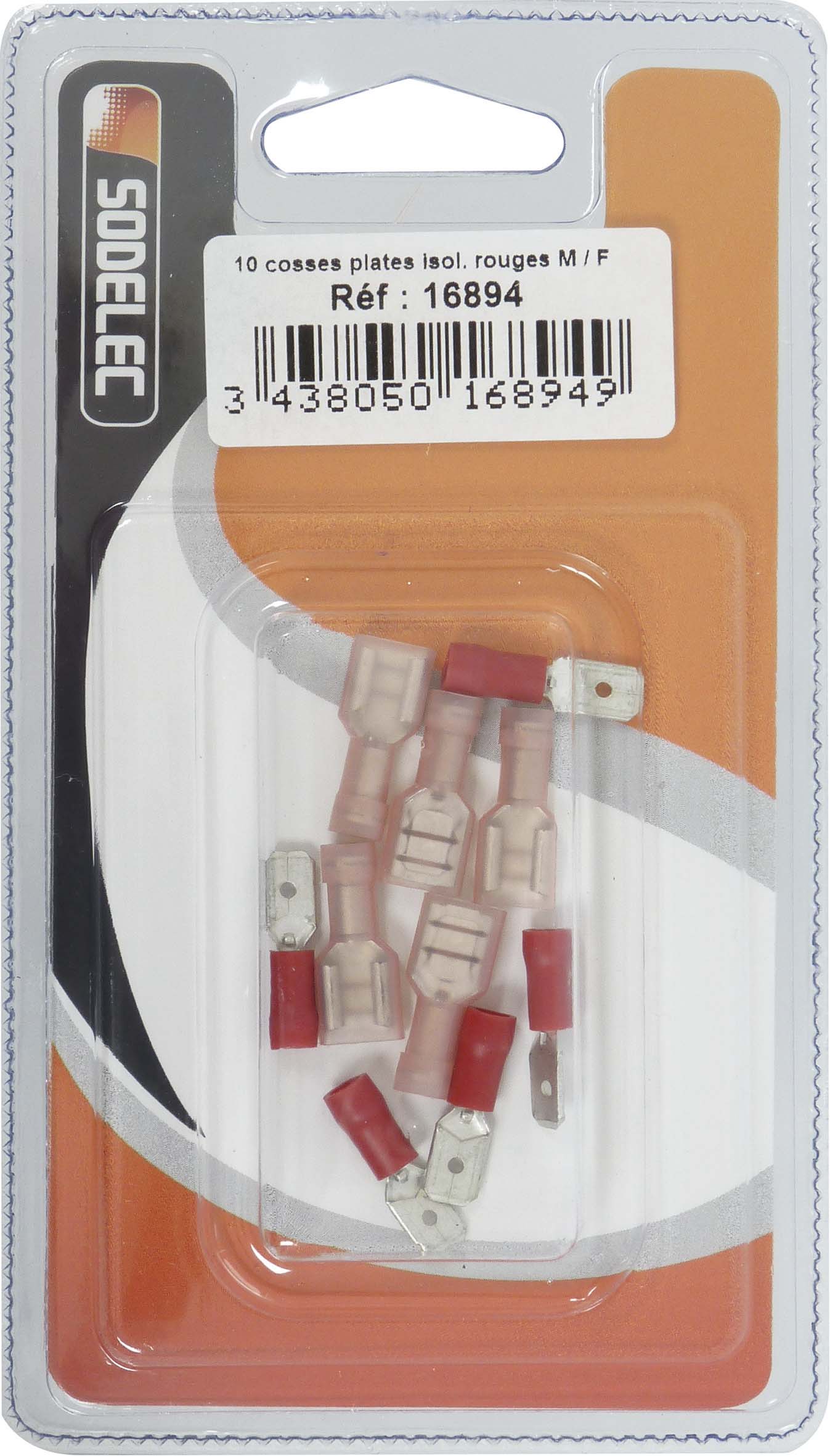 Découvrez 10 cosses plates isolees rouges m/f SODELEC - 16894 disponible à l'achat