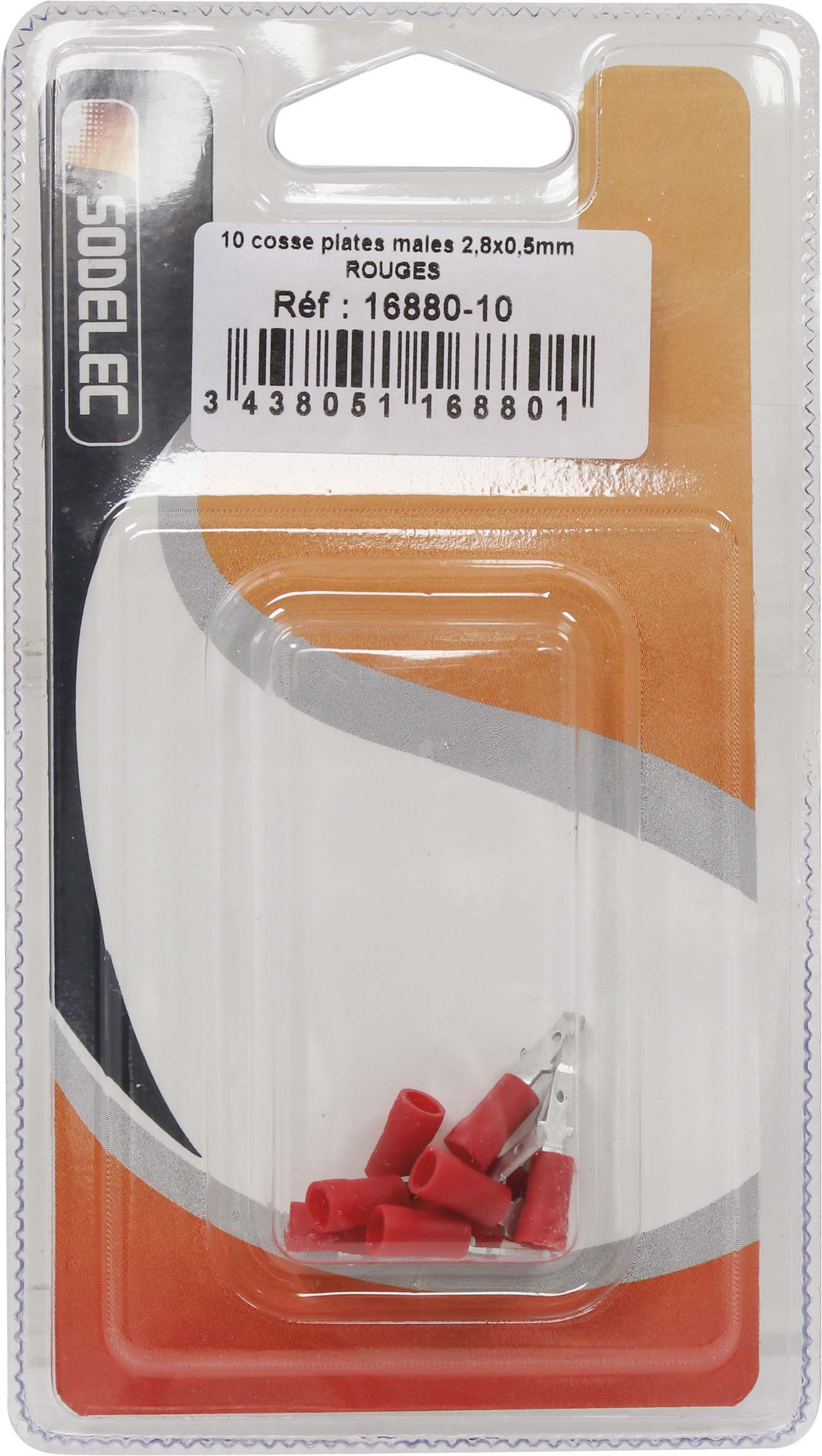 Découvrez 10 cosses plates males 28x05mm rouges en blister - 1688010 disponible à l'achat