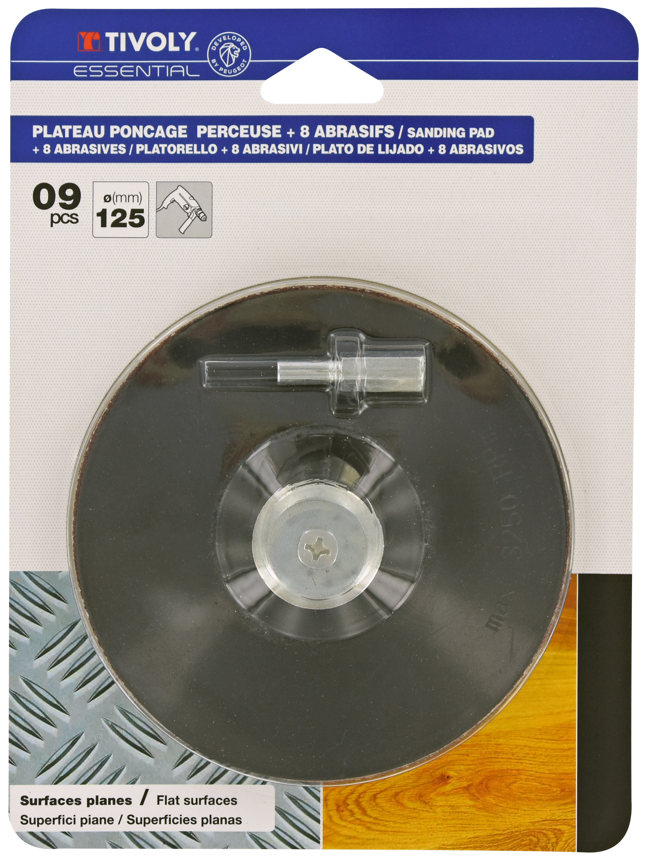 10 pièces -1 plateau ponceur Ø 125mm + Monture + 8 abrasifs TIVOLY - XT10112011009