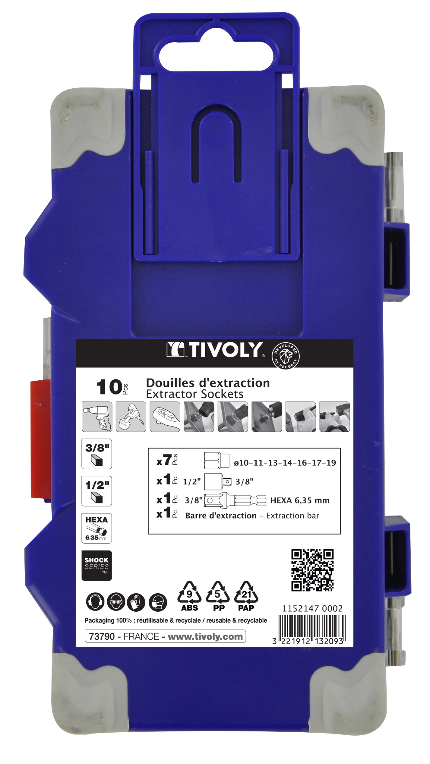Découvrez 10 pièces -7 douilles d'extraction entrainement 3/8" Ø 10 à 19mm + accessoires -IMPACT TIVOLY - 11521470002 disponible à l'achat