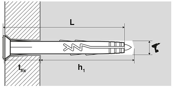 Cheville à installation rapide grâce à sa conception préassemblée, équipée d'un clou fileté permettant son démontage. Son design optimise le guidage du clou pour une insertion précise. Disponible en trois finitions de tête : plate, fraisée, et large pour diverses applications. Caractéristiques techniques : diamètre de 6 mm, longueur de 55 mm, profondeur de perçage requise de 33 mm, et diamètre de perçage identique à 6 mm. La cheville peut fixer des matériaux jusqu'à 25 mm d'épaisseur. Compatible avec des supports tels que la brique (pleine ou creuse) et le béton.