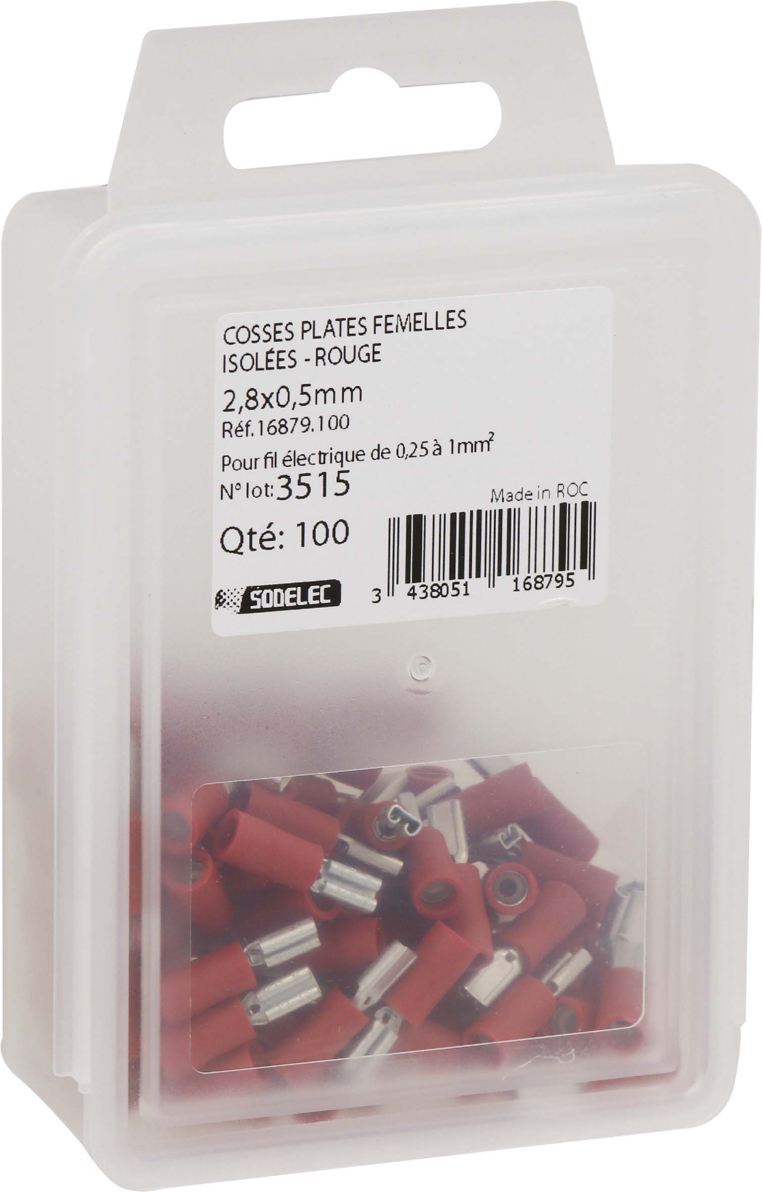 Découvrez 100 cosses plates femelles isolees rouges 28x05 en blister - 16879100 disponible à l'achat