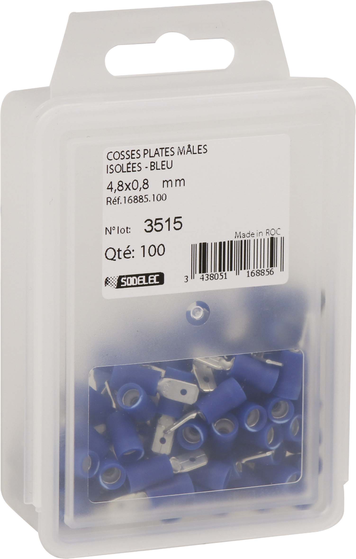 Découvrez 100 cosses plates males isolees bleues 48x08 en blister - 16885100 disponible à l'achat