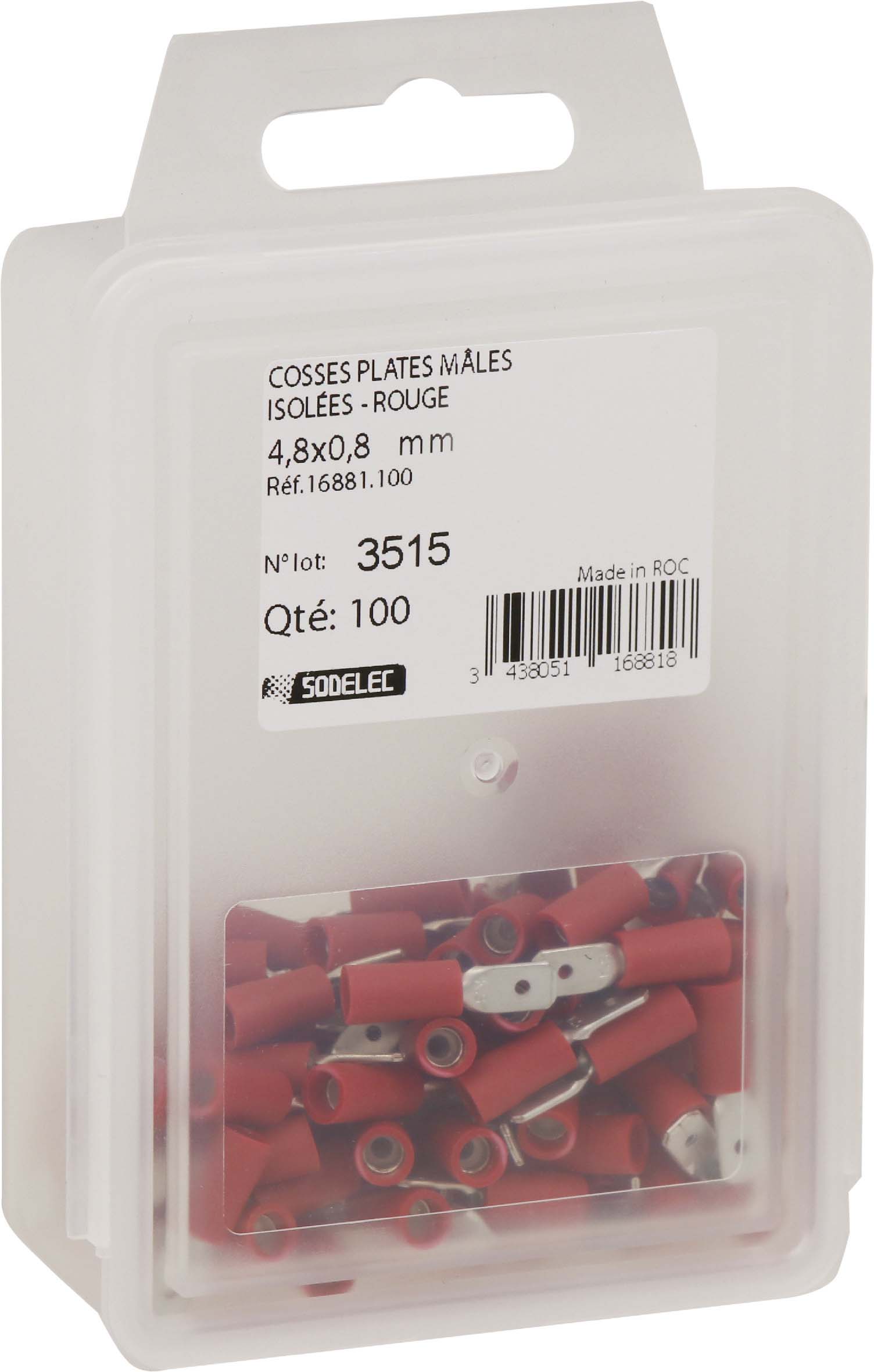 Découvrez 100 cosses plates males isolees rouges 48x08 en blister - 16881100 disponible à l'achat