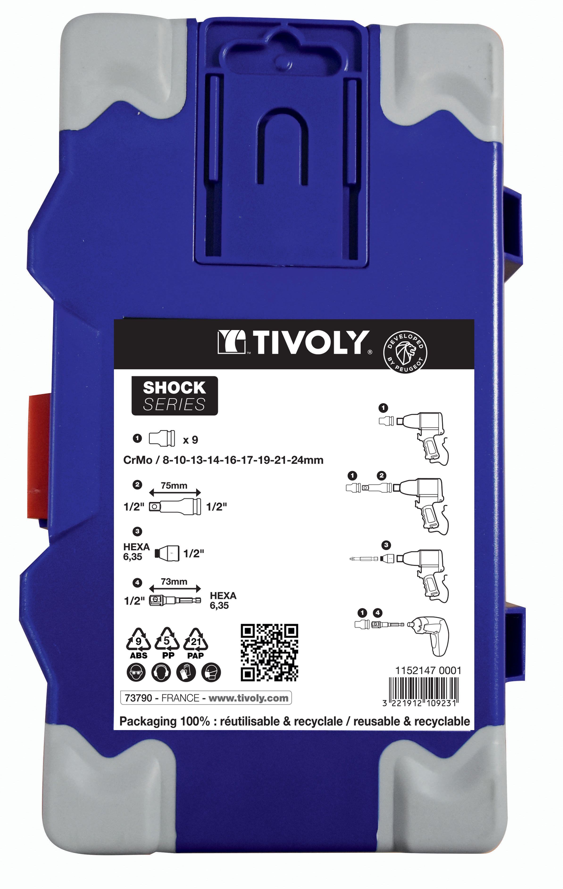 Découvrez 12 pièces- 9 Douilles à choc Ø 8 à 24mm + 2 adaptateurs + 1 rallonge -IMPACT TIVOLY - 11521470001 disponible à l'achat