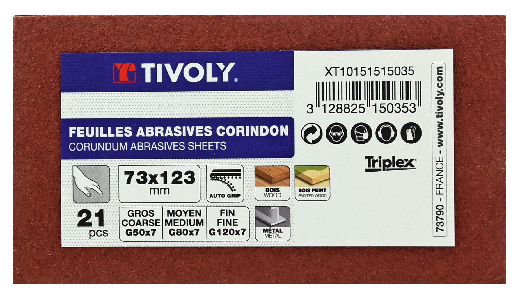 Découvrez 21 feuilles abrasives corindon 73 x123mm TIVOLY - XT10151515035 disponible à l'achat