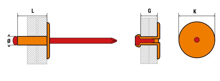 250 rivets standards à aluminium/acier à tête extra large à Ø4,8x16mm