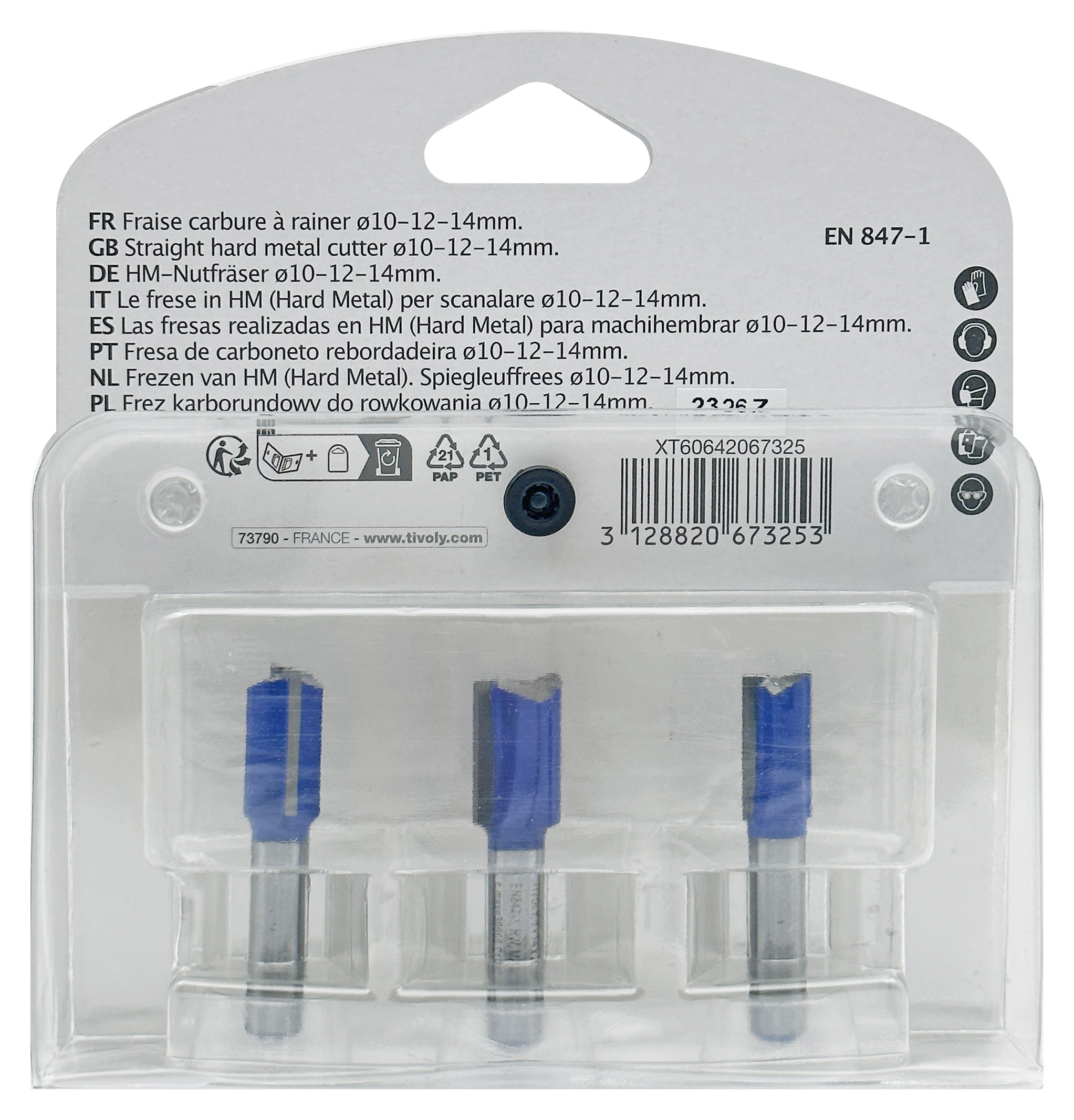 3 fraises à rainurer Ø10 - 12 - 14mm TIVOLY - XT60642067325