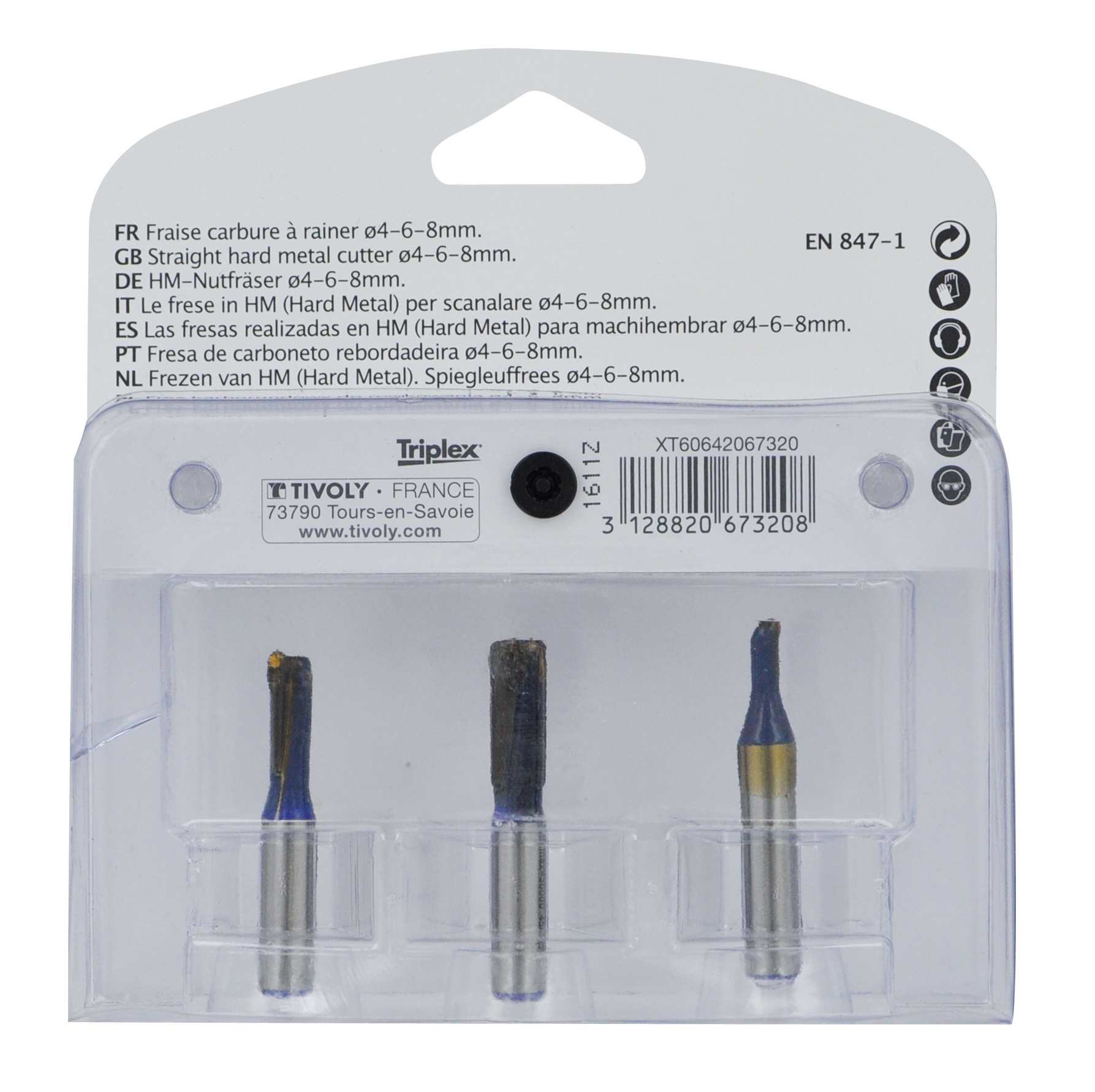 Découvrez 3 fraises à rainurer Ø4 - 6 - 8mm TIVOLY - XT60642067320 disponible à l'achat