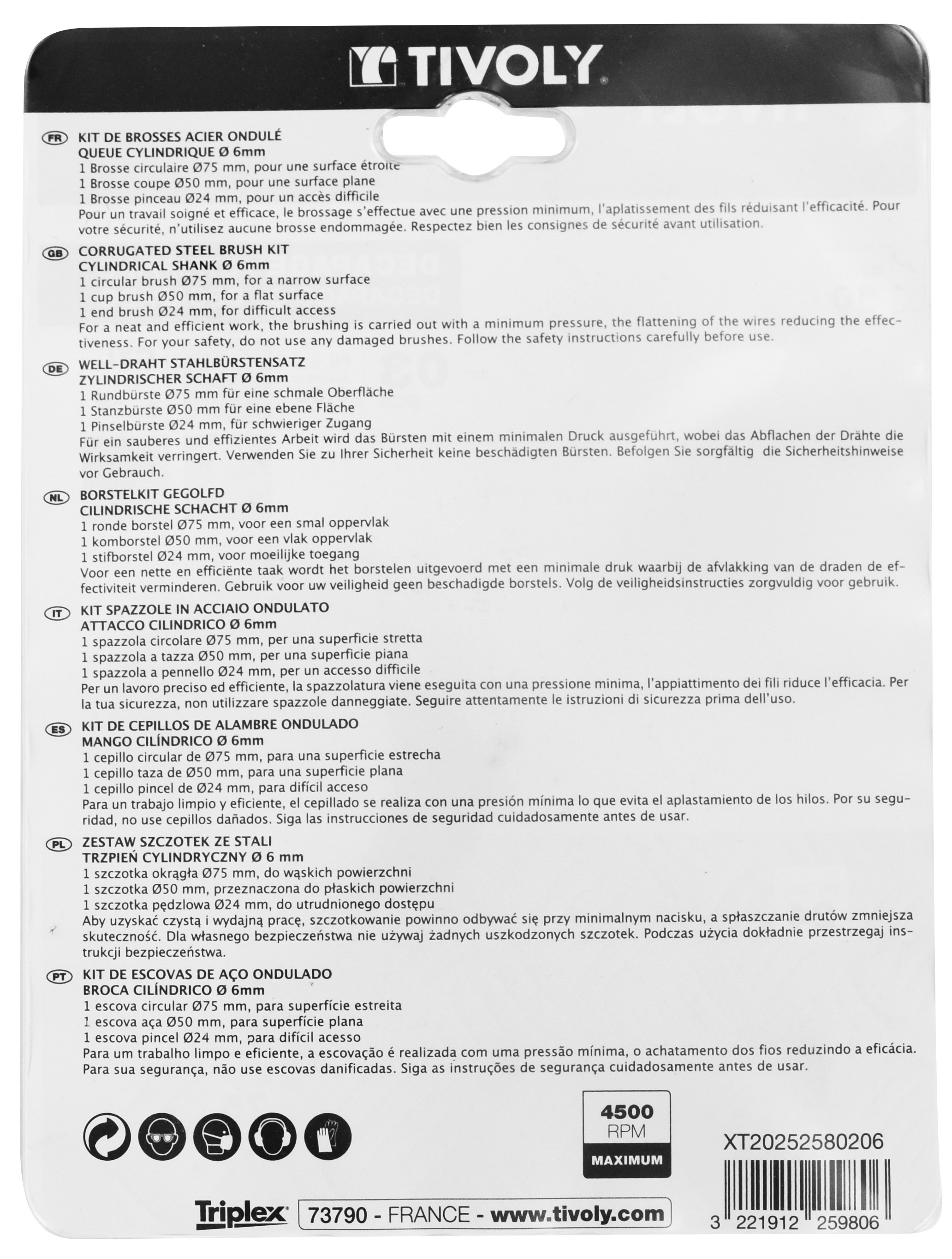 3 pièces : brosses acier pour le métal Ø 24 - 50 - 75mm TIVOLY - XT20252580206