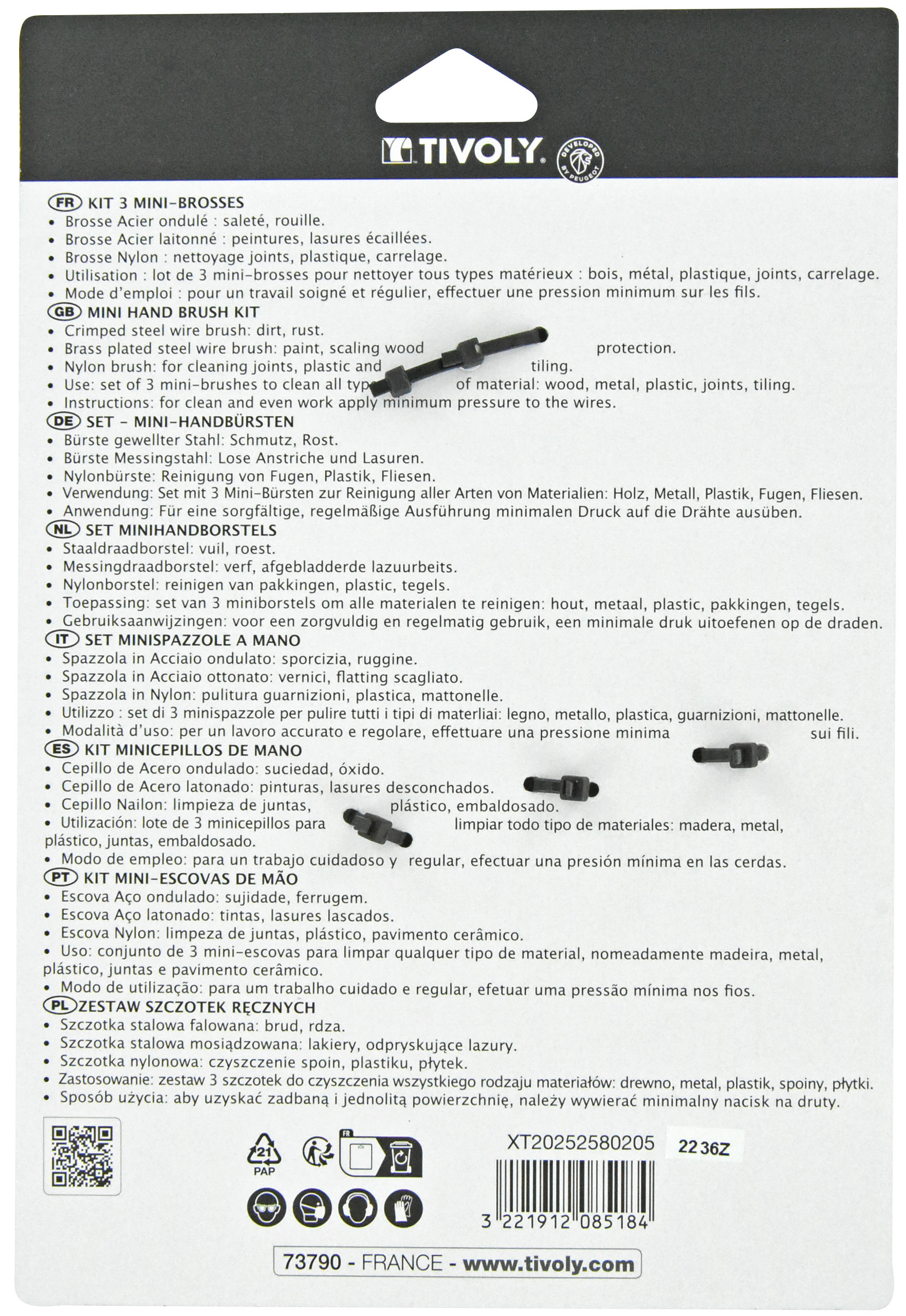 3 pièces : mini-brosses à main manche plastique TIVOLY - XT20252580205