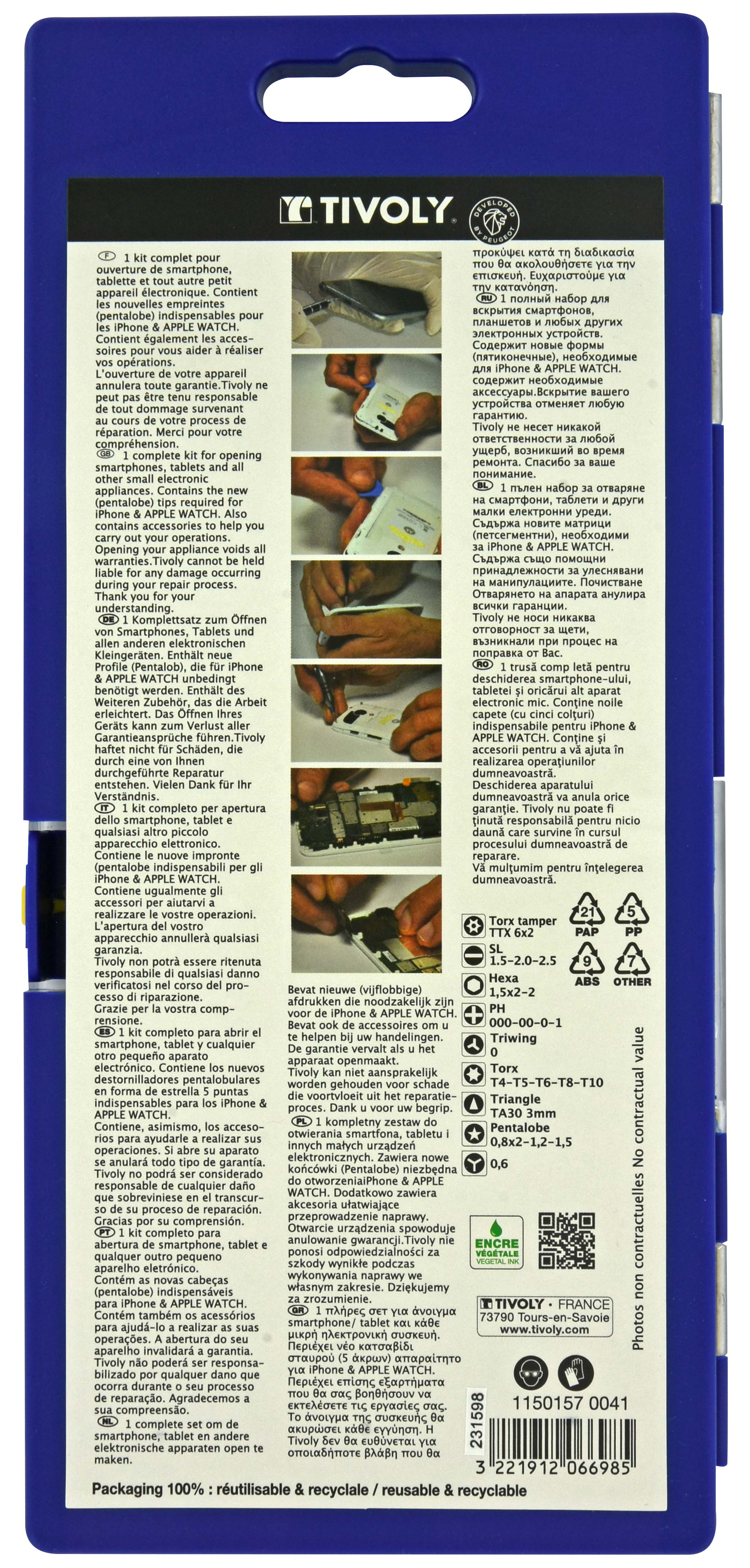 - Inclus empreintes pentalobe pour iPhone 4 et versions ultérieures.
