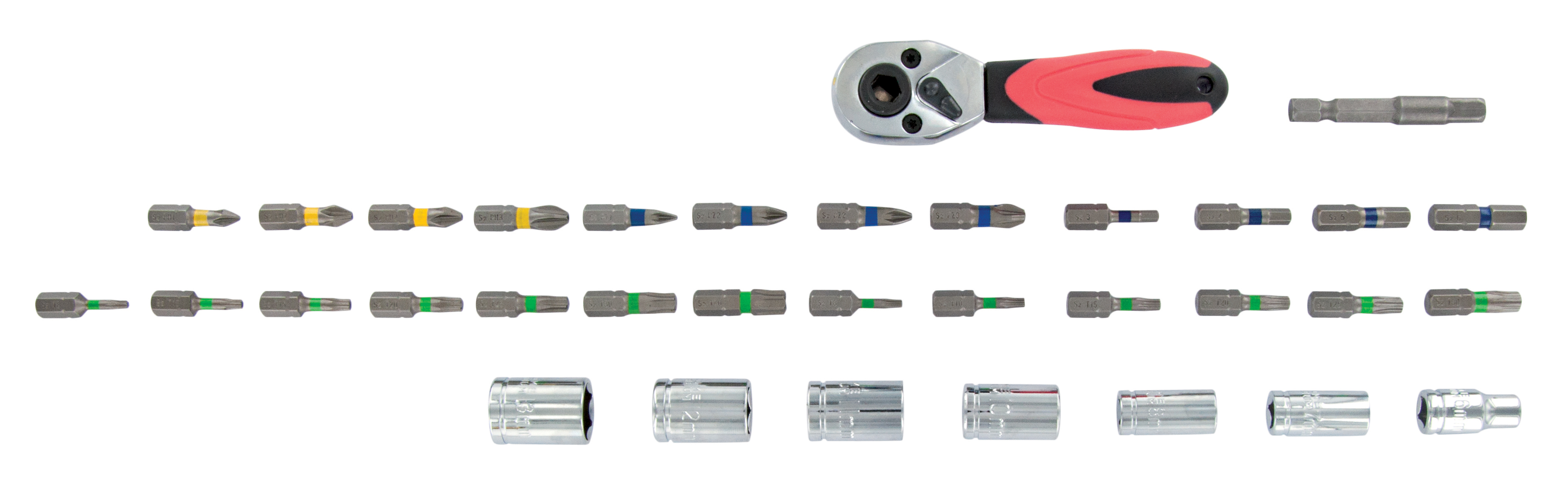 34 pièces -19 embouts torsion + 7 douilles + 1 porte-douille + 1 poignée de vissage TIVOLY - 11521572008