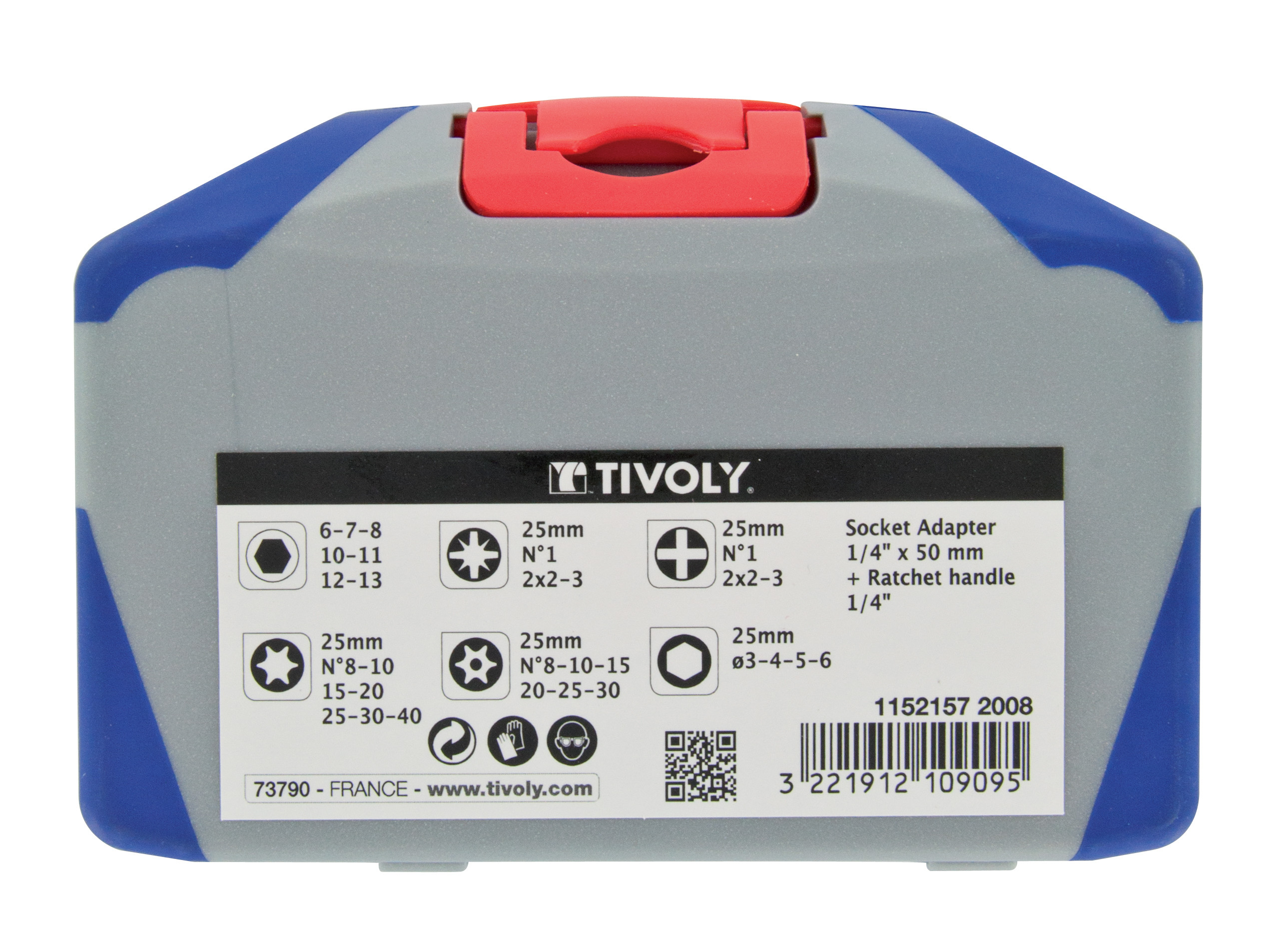 Découvrez 34 pièces -19 embouts torsion + 7 douilles + 1 porte-douille + 1 poignée de vissage TIVOLY - 11521572008 disponible à l'achat