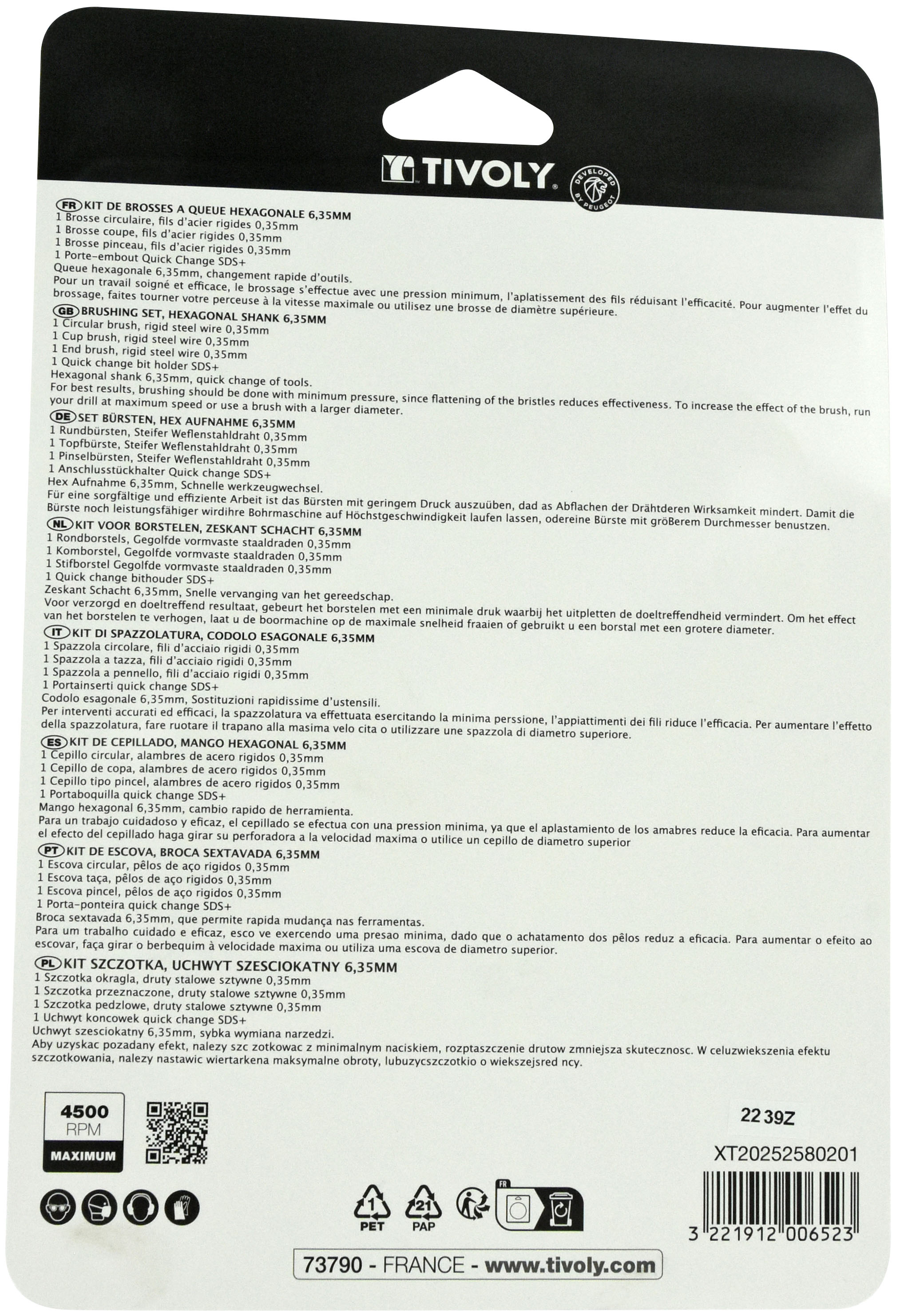 Découvrez 4 pièces : 3 brosses pour métal + 1 adaptateur SDS+ TIVOLY - XT20252580201 disponible à l'achat