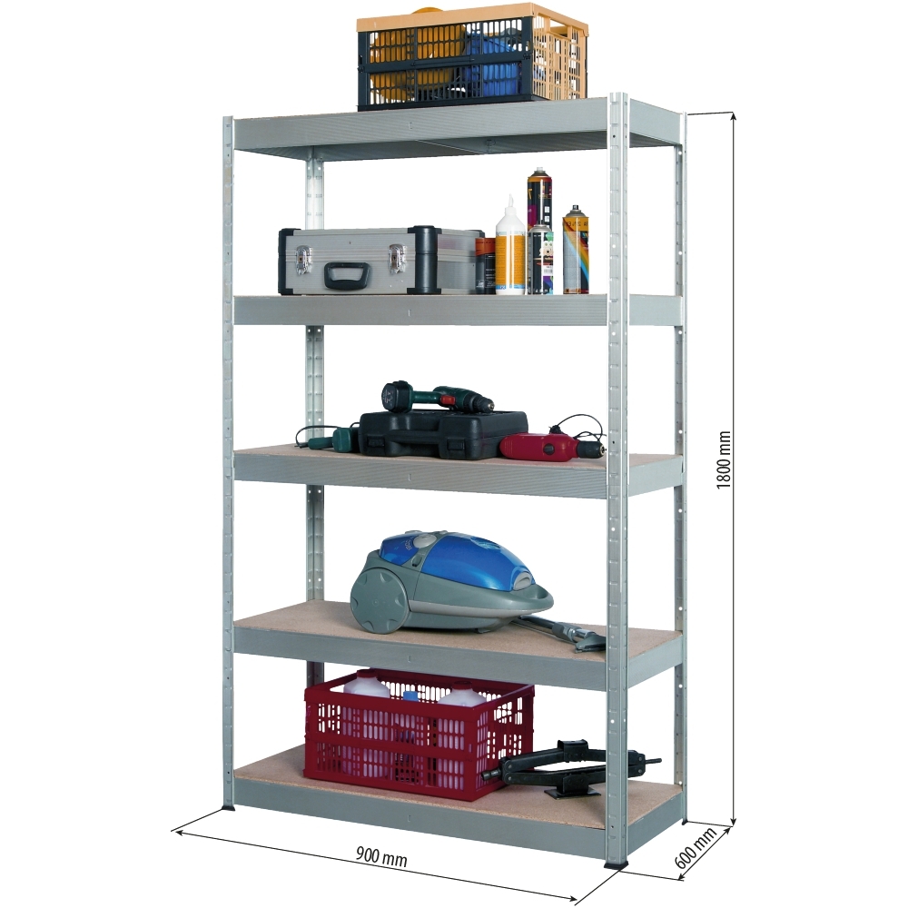 Etagère métallique à emboîter 5 tablettes bois 1800x900x600mm max 2T STILKER - 09066