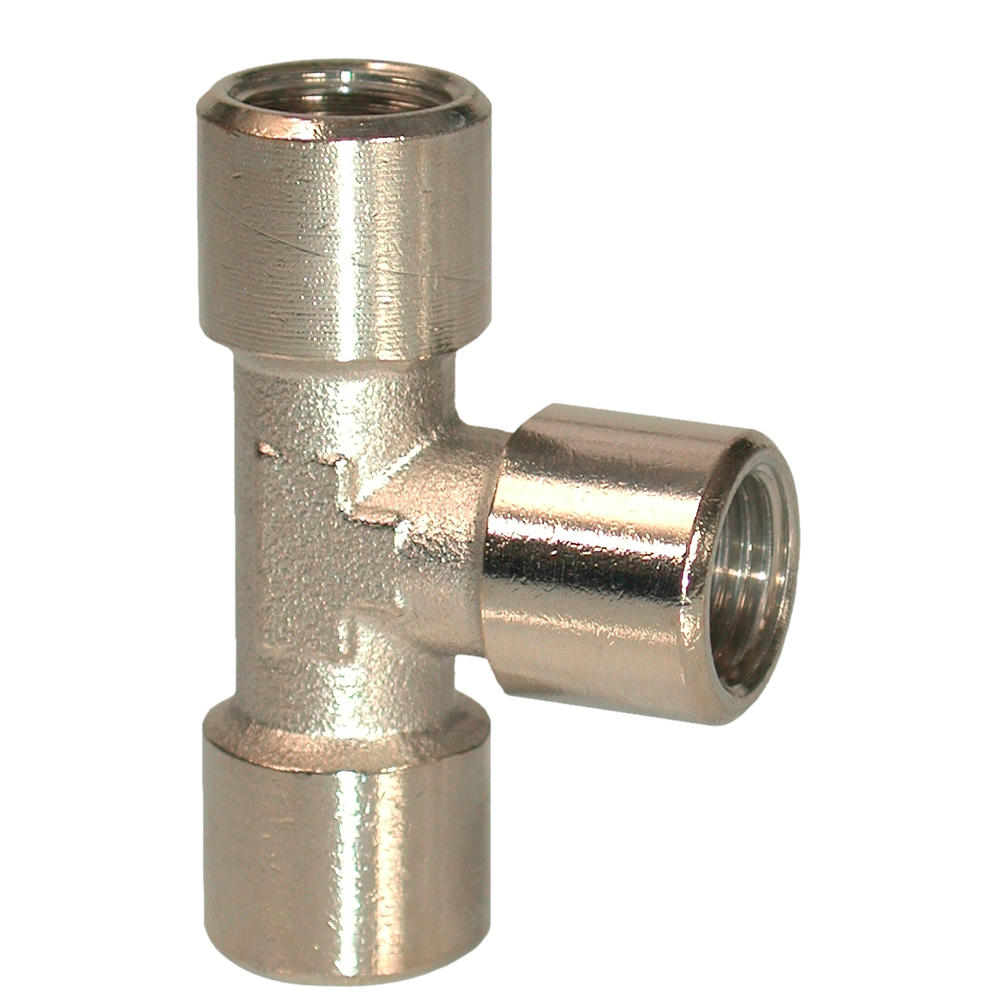 Découvrez le raccord de jonction en laiton nickelé, idéal pour assurer des connexions fiables dans vos installations. Ce modèle est conçu avec des taraudages coniques de 3 x 1/4" femelle et offre une configuration en té à 90°, permettant une orientation optimale des conduits.