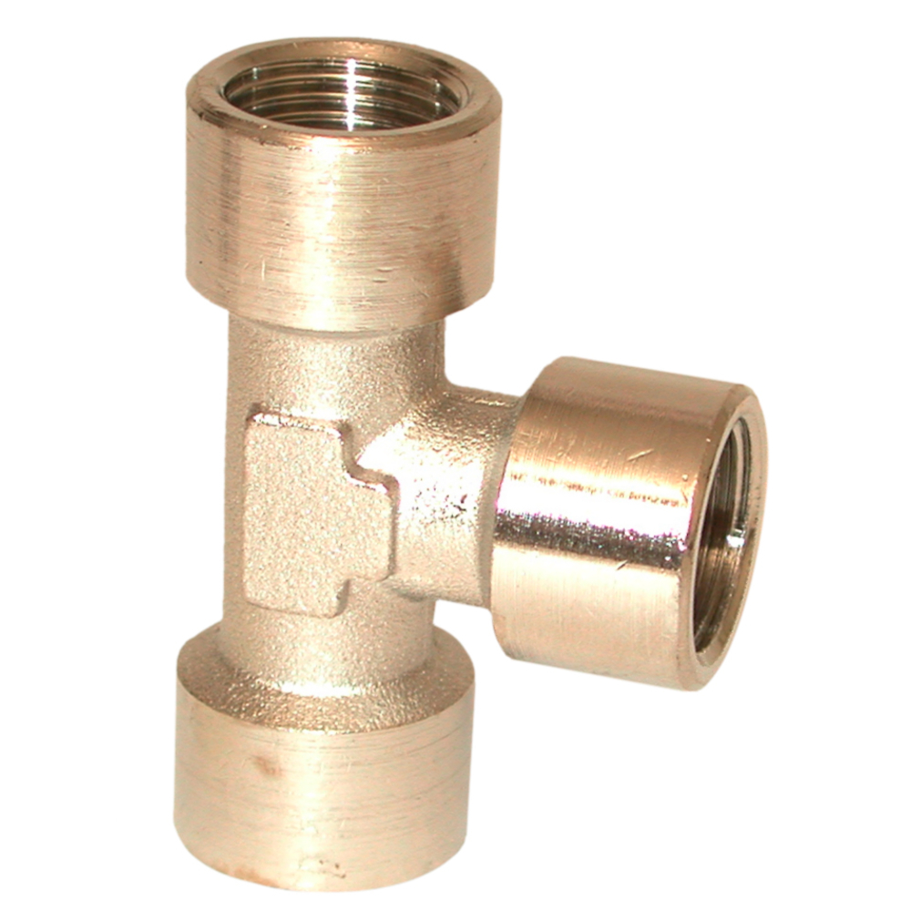 Découvrez ce raccord de jonction en laiton nickelé, conçu pour assurer une connexion fiable dans divers systèmes. Ce modèle, avec ses taraudages coniques de 3 x 3/8' femelle, est particulièrement adapté pour les installations nécessitant un té à 90 °, offrant une orientation efficace de vos conduits.