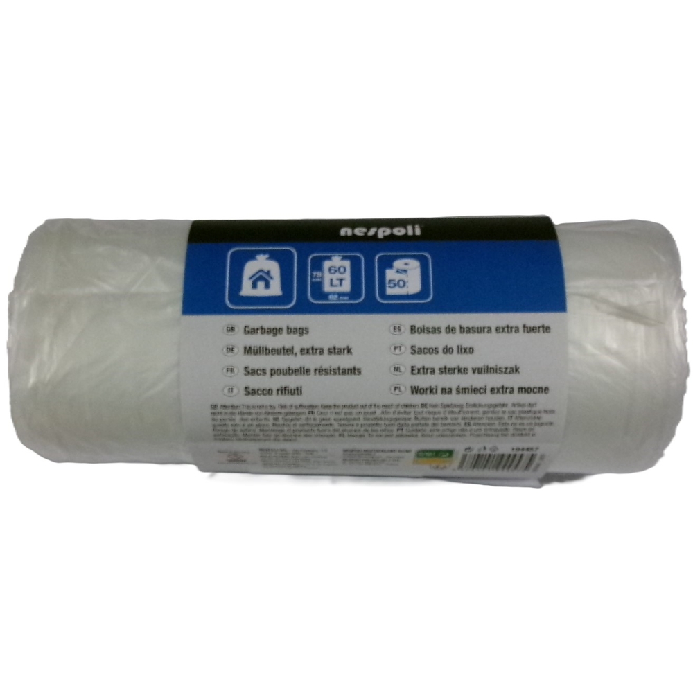 Découvrez 50 sacs pour poubelle domestique grand litrage 60 litres - NESPOLI - 194457 disponible à l'achat