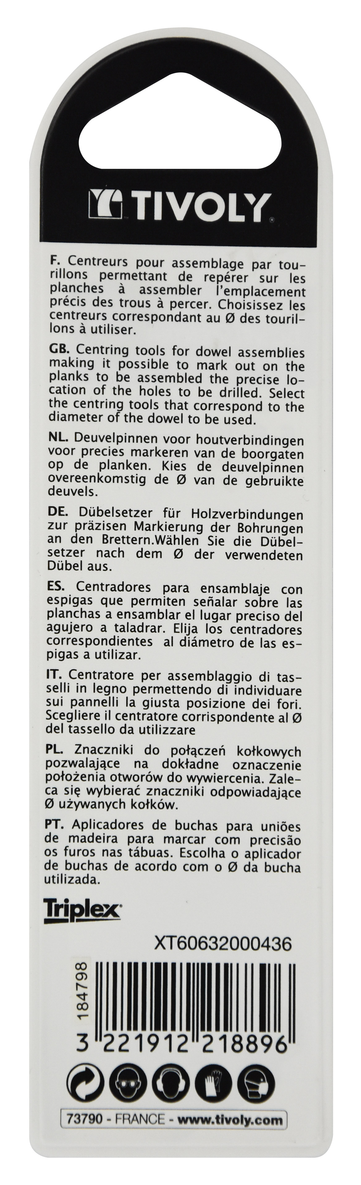 6 Centreurs Ø 6 - 8 - 10mm (2 pcs de chaque) TIVOLY - XT60632000436