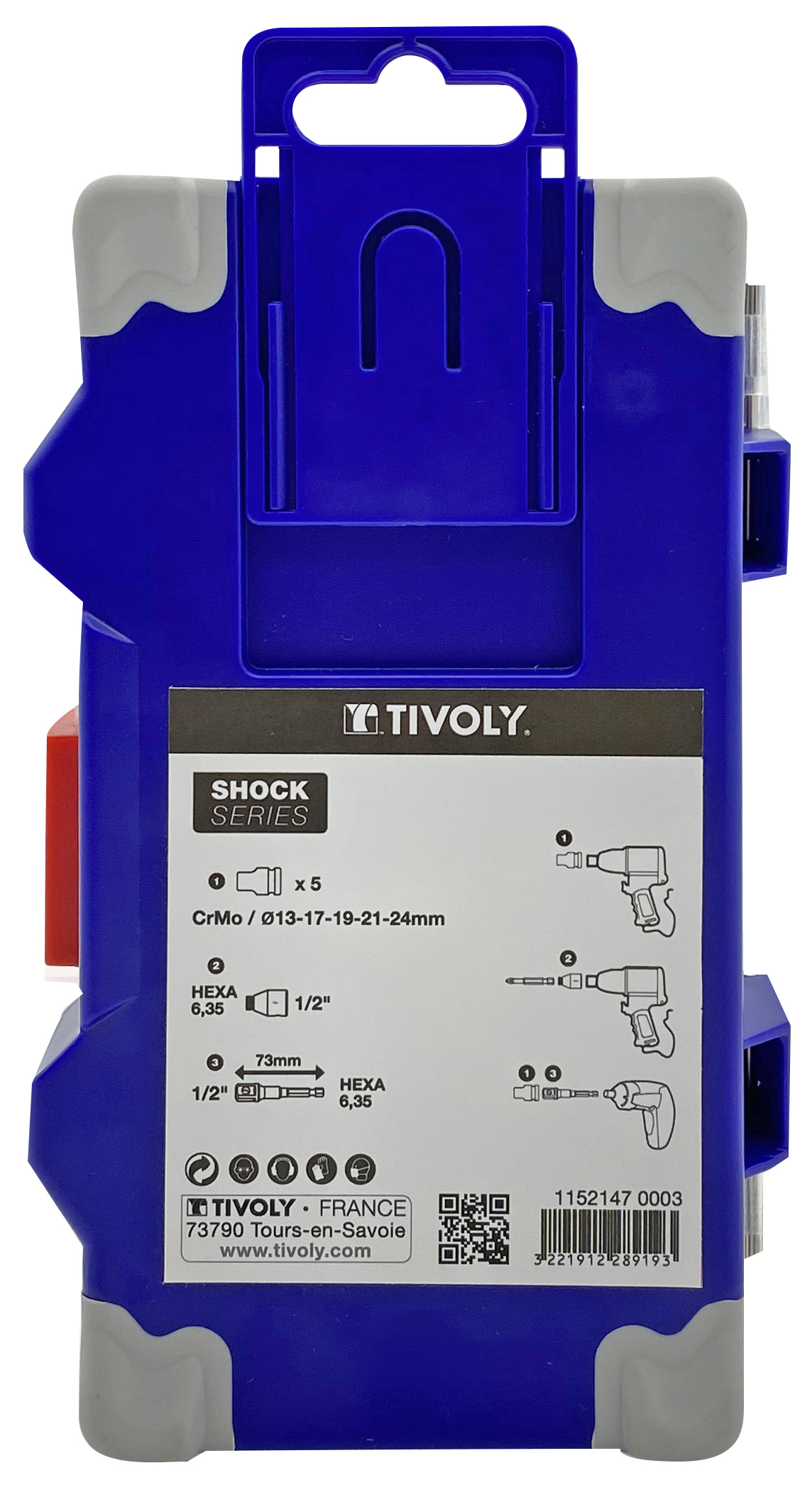 7 pièces -5 douilles à choc Ø 13 à 24mm + 1 douille F 1/2" porte embout hexa 6.35mm + 1 porte douille hexa 6.35 mm pour douilles 1/2" -IMPACT TIVOLY - 11521470003