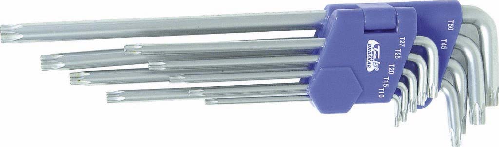 - Ensemble de 9 clés mâles coudées Torx extra longues.