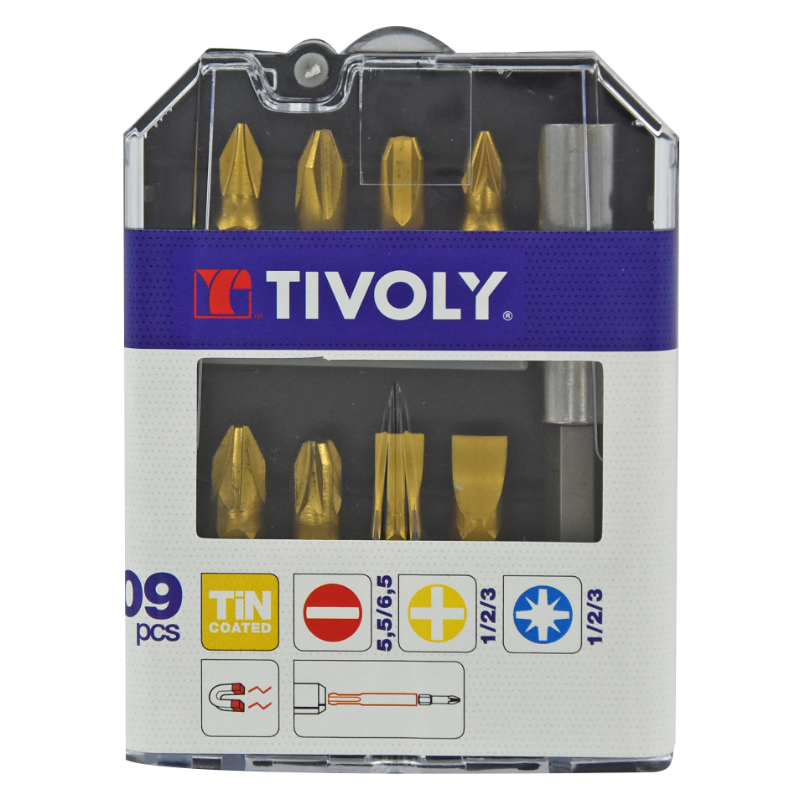Découvrez 9 pièces -8 embouts revêtus TiN + 1 porte-embout magnétique TIVOLY - 11501570022 disponible à l'achat