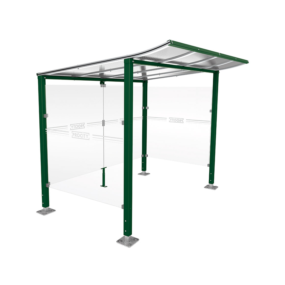 Disponible en deux longueurs, 1300 mm et 2500 mm, cet abri a une hauteur de 2100 mm et une profondeur de 1500 mm. Sa structure est renforcée par des poteaux en tube acier de 70 x 70 mm. La toiture se compose de profilés en aluminium anodisés avec des traverses en tube acier de 40 x 40 mm et des panneaux en polycarbonate alvéolaire de 10 mm, traités anti-UV. Les bardages sont en verre sécurisé de 5 mm d'épaisseur, et la finition est personnalisée selon une palette de couleurs.