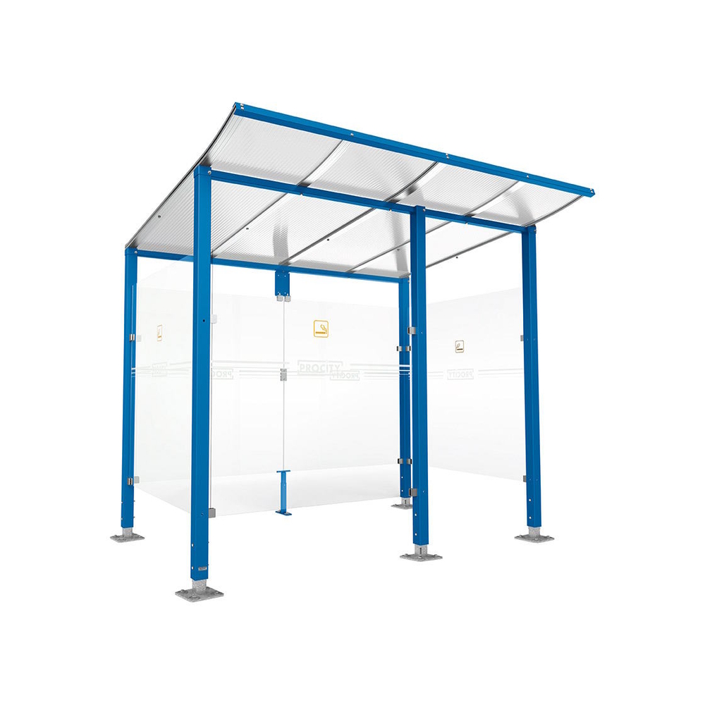 Abri fumeurs Modulo RAL5010 - bardage de retour avant - Sur platines - Long 2500mm Prof 2000mm - PROCITY - 599570.5010