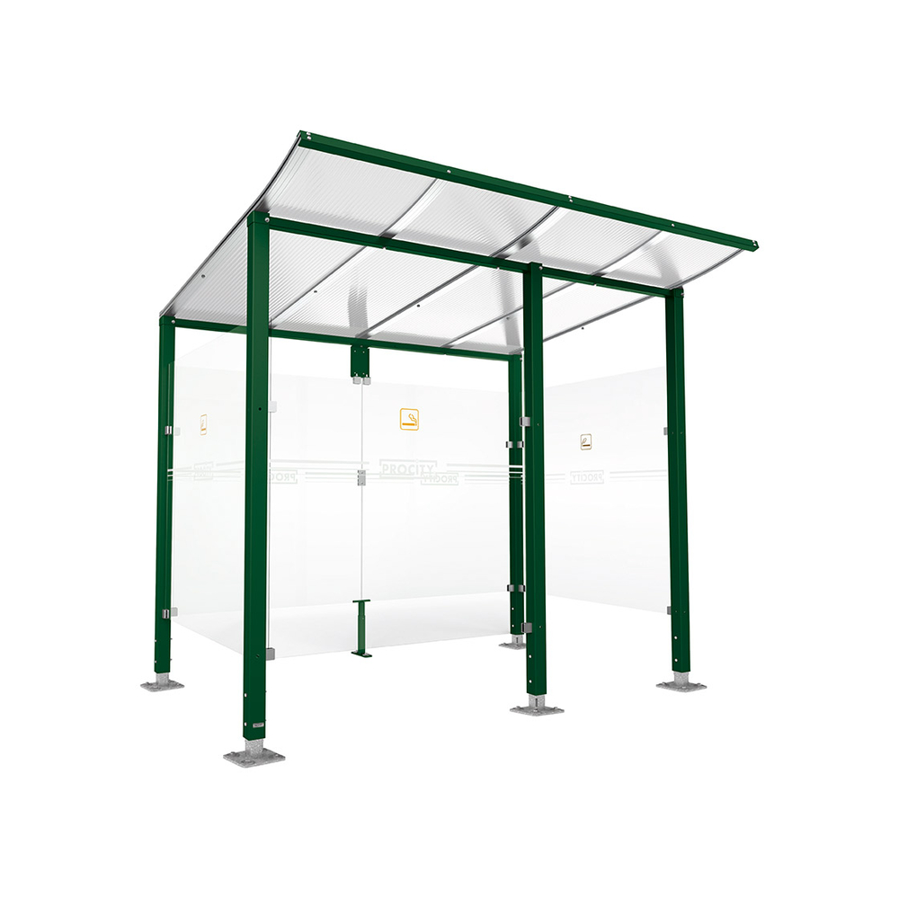 Abri fumeurs Modulo RAL6005 - bardage de retour avant - Sur platines - Long 2500mm Prof 2000mm - PROCITY - 599570.6005
