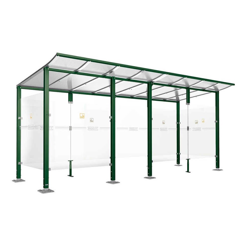 Abri fumeurs Modulo RAL6005 - bardage de retour avant - Sur platines - Long 5000mm Prof 2000mm - PROCITY - 599571.6005