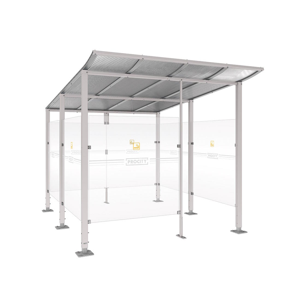 Abri fumeurs Modulo RAL7044 - bardage de retour avant - Sur platines - Long 2500mm Prof 3400mm - PROCITY - 599574.7044