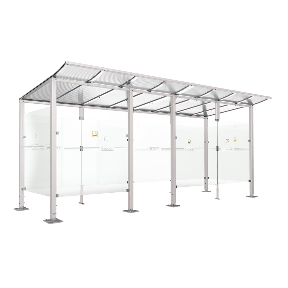 Abri fumeurs Modulo RAL7044 - bardage de retour avant - Sur platines - Long 5000mm Prof 2000mm - PROCITY - 599571.7044