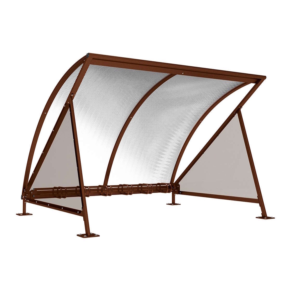 L'abri bénéficie d’une finition peinture sur galvanisation disponible dans plusieurs coloris, dont le gris PROCITY Aspect Corten. Un module complémentaire de 2800 mm de largeur peut être ajouté pour augmenter la capacité d’accueil. Des options telles que des bardages latéraux supérieurs en demi-cercles de polycarbonate fumé sont également disponibles.