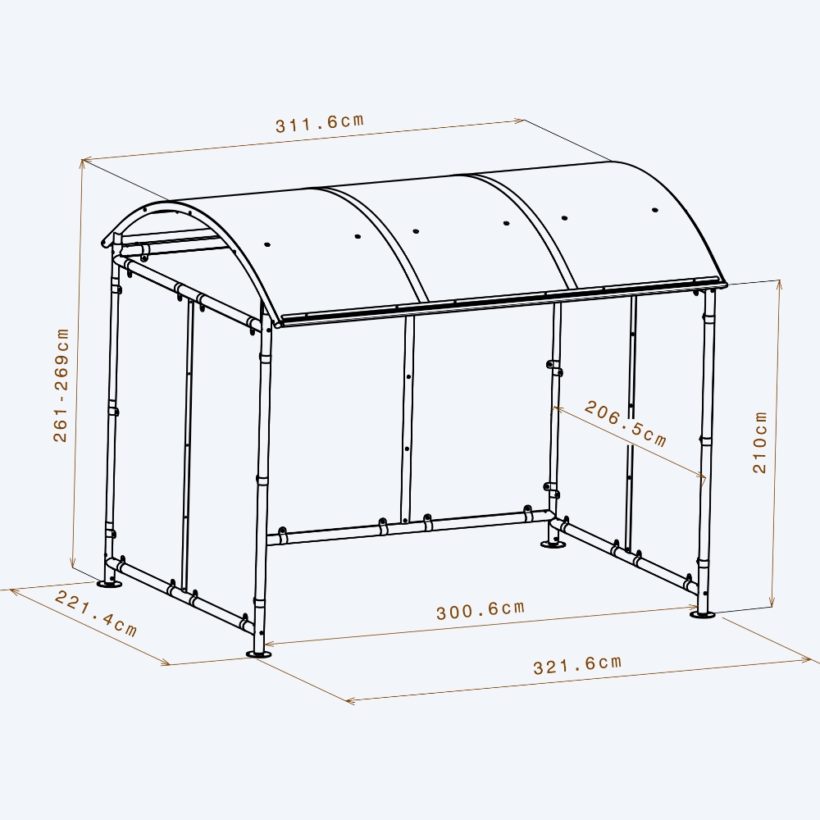 Découvrez l'Abri vélos Dôme, une solution idéale pour protéger vos deux-roues. Ce modèle initial peut accueillir jusqu'à 6 vélos et 2 scooters, ou 9 vélos au total.