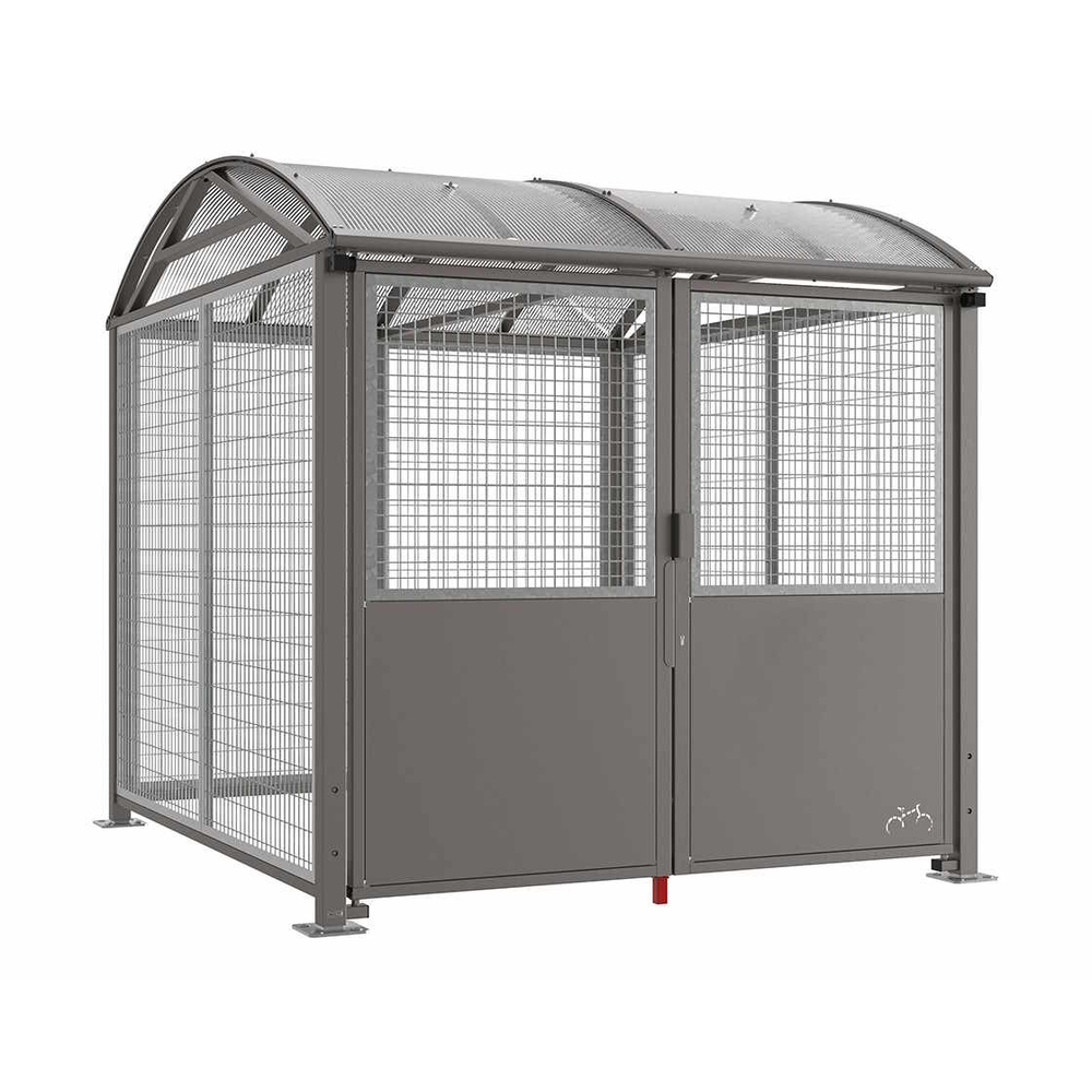 Abri vélos et motos Voûte sécurisé L RAL3004 - compl bardages et porte - Grillage peint - Clé européenne - PROCITY - 529093.3004