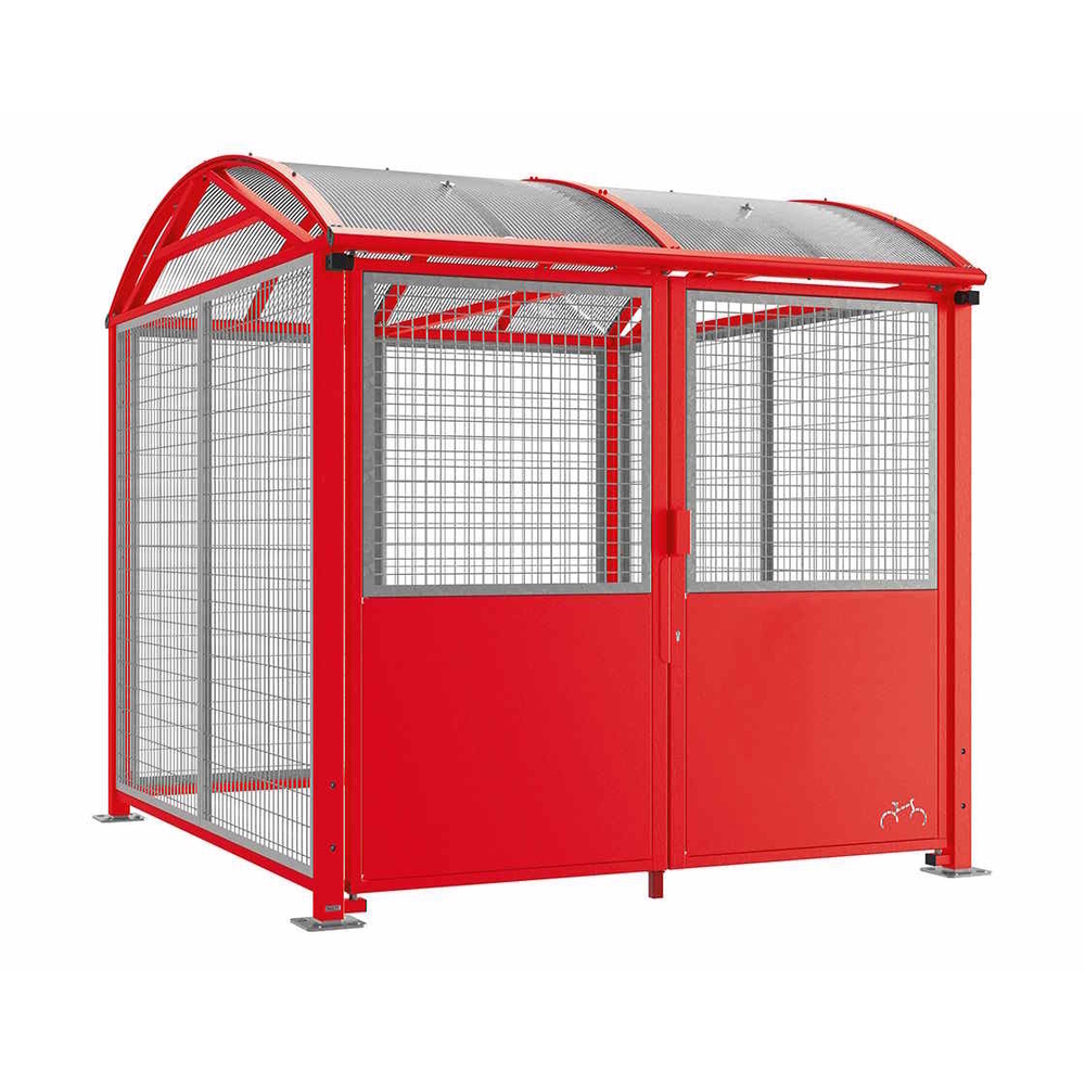Abri vélos et motos Voûte sécurisé L RAL3020 - Initial bardages et porte - Grillage en galva - Clé européenne - PROCITY - 529090.3020