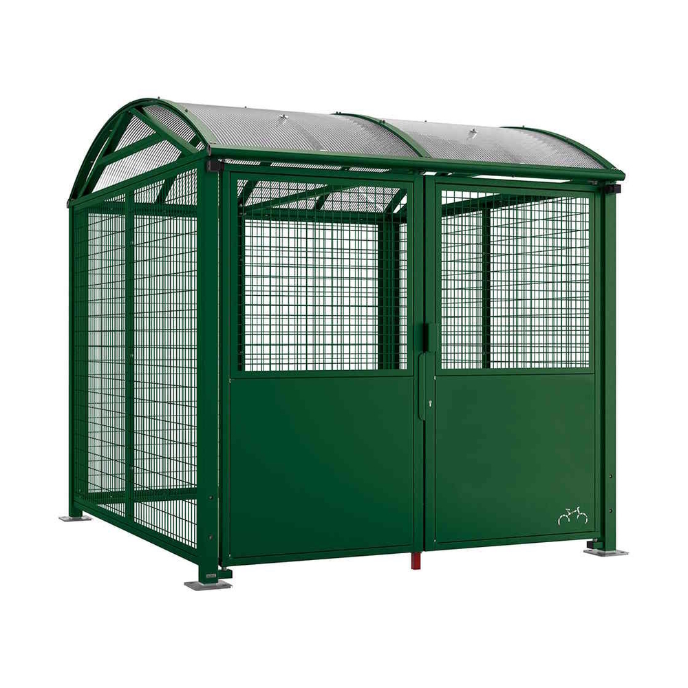 Abri vélos et motos Voûte sécurisé L RAL6005 - Initial bardages et porte - Grillage peint - Clé européenne - PROCITY - 529091.6005