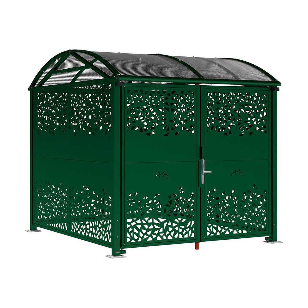 Abri vélos et motos Voûte sécurisé L tôle décorative RAL6005 - Initial bardages et porte - Digicode - PROCITY - 529097D.6005