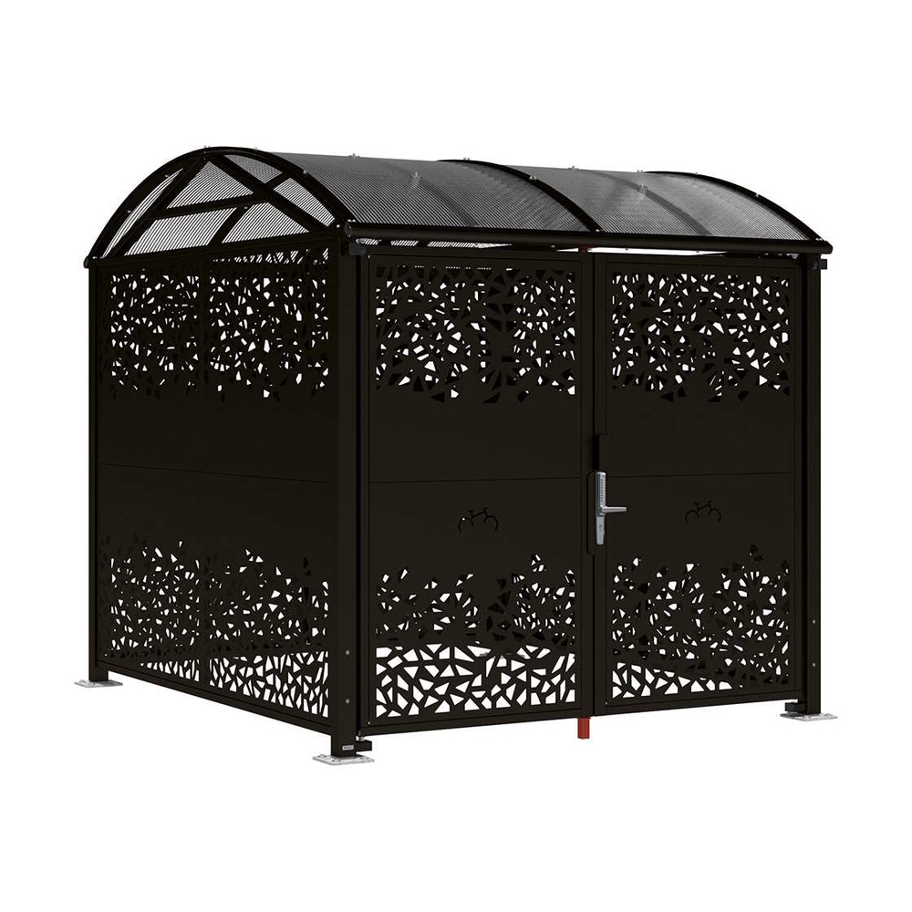 Abri vélos et motos Voûte sécurisé L tôle décorative RAL9005 - Initial bardages et porte - Digicode - PROCITY - 529097D.9005