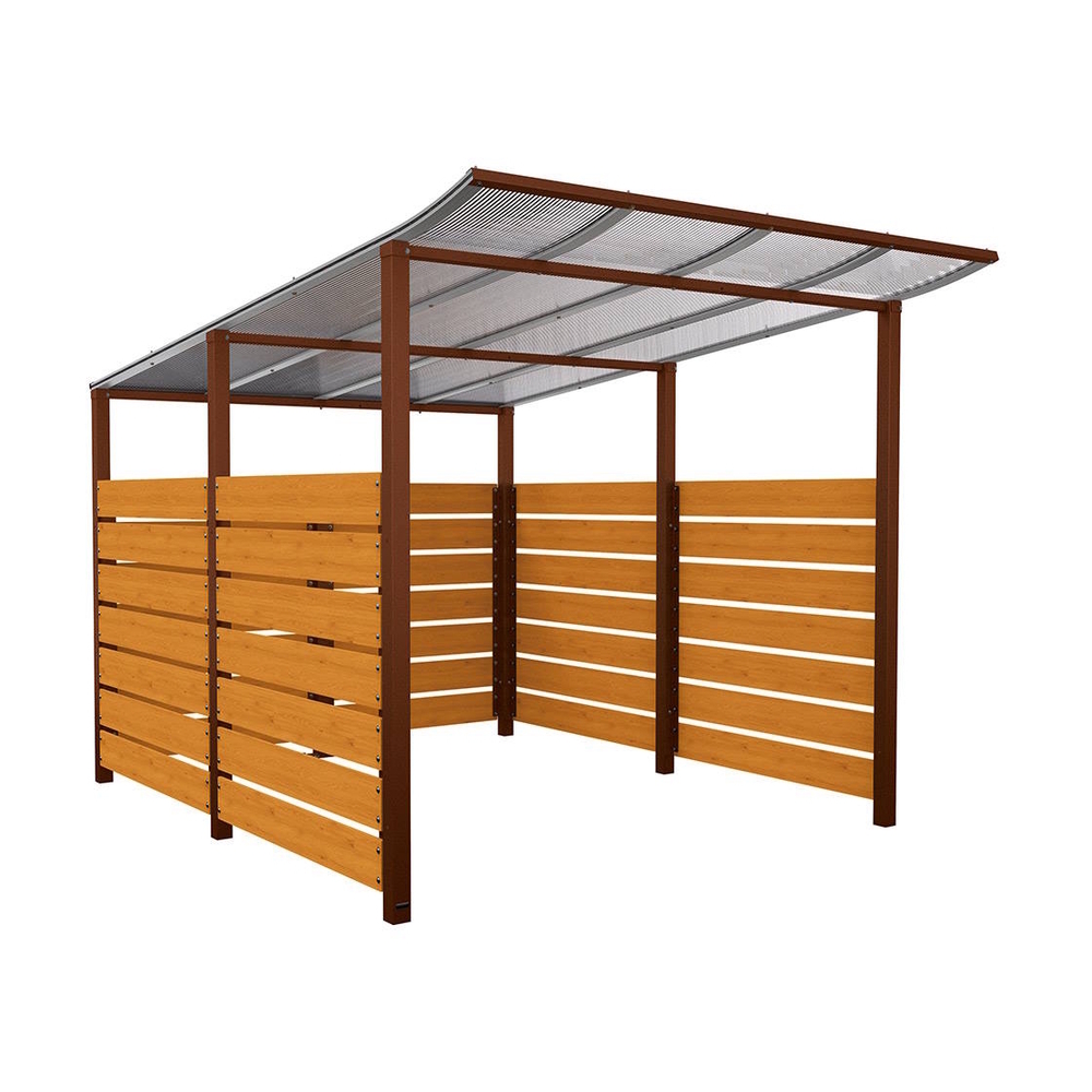 Découvrez Abri vélos Modulo bardages en stratifié compact Aspect Corten - Stratifié chêne clair - Initial + bardage de fond et latéraux - Scellement direct - Prof 3400mm - PROCITY - 529216.S025.CHEC disponible à l'achat