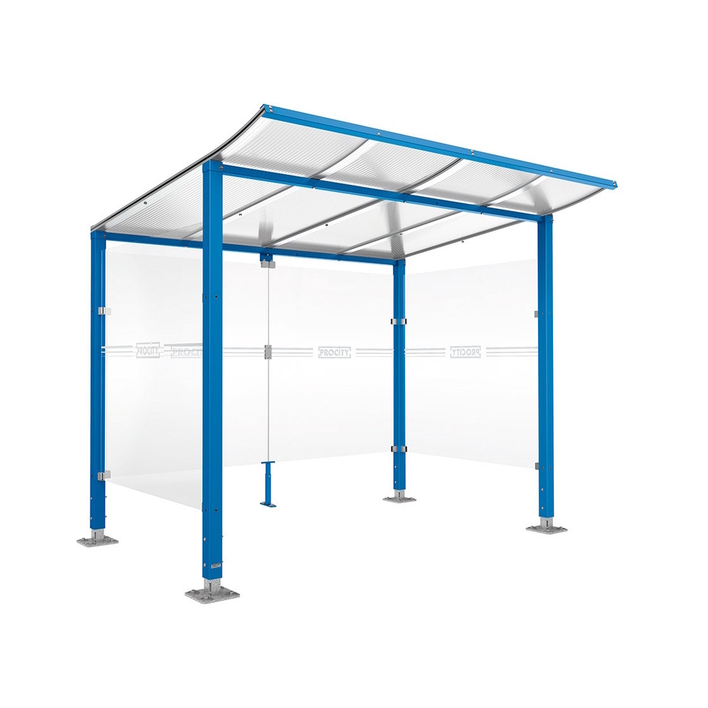 Cet abri répond aux normes de sécurité et de qualité grâce à ses matériaux robustes et son traitement anti-UV. Il est adapté à divers contextes urbains et s'adapte facilement à différentes configurations grâce à ses modules complémentaires de 2500 mm de largeur.