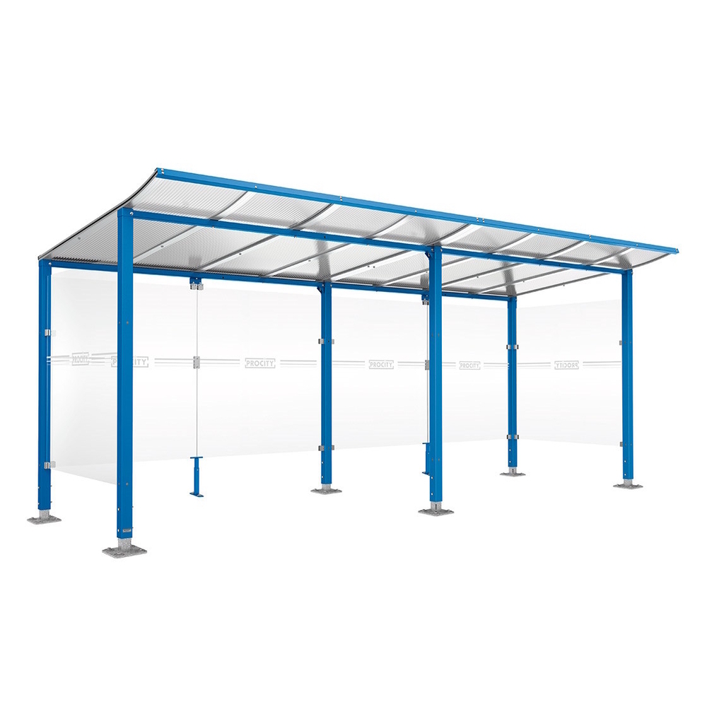 Découvrez Abri vélos Modulo bardages en verre RAL5010 - initial + compl + bardages de fond et latéraux - Sur platines - Prof 2000mm - PROCITY - 599171.5010 disponible à l'achat