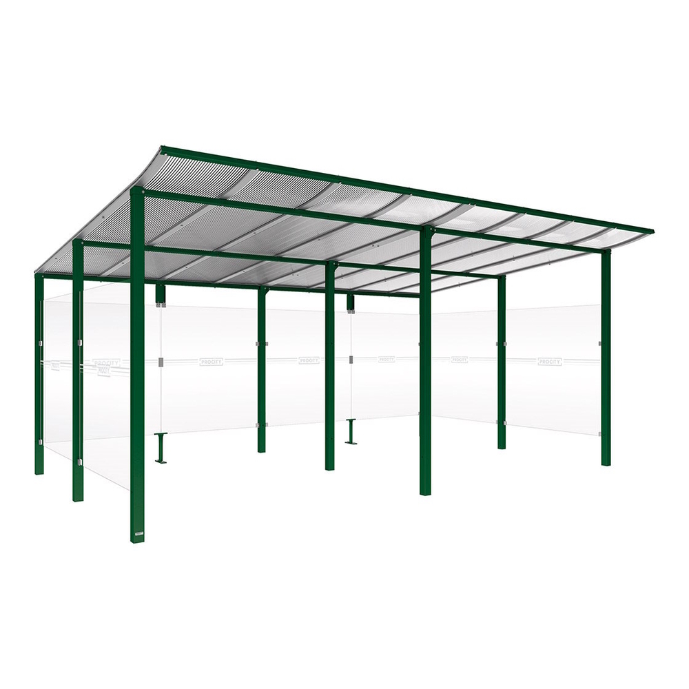 Abri vélos Modulo bardages en verre RAL6005 - initial + compl + bardages de fond et latéraux - Scellement direct - Prof 3400mm - PROCITY - 529191.6005