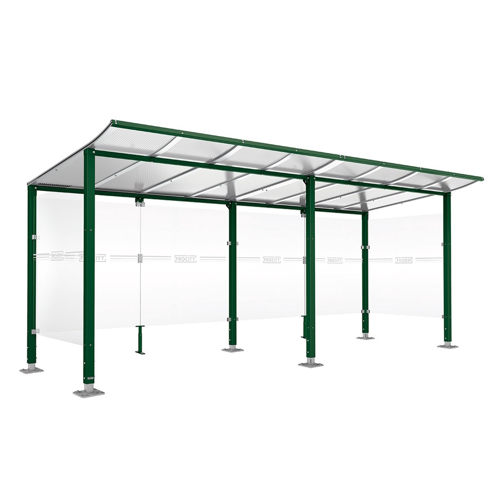 Découvrez Abri vélos Modulo bardages en verre RAL6005 - initial + compl + bardages de fond et latéraux - Sur platines - Prof 2000mm - PROCITY - 599171.6005 disponible à l'achat