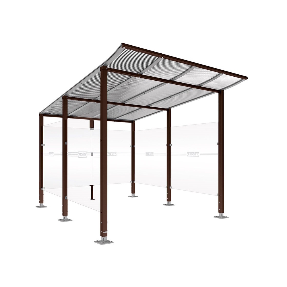 Abri vélos Modulo bardages en verre RAL8017 - Initial + bardage de fond et latéraux - Sur platines - Prof 3400mm - PROCITY - 599190.8017