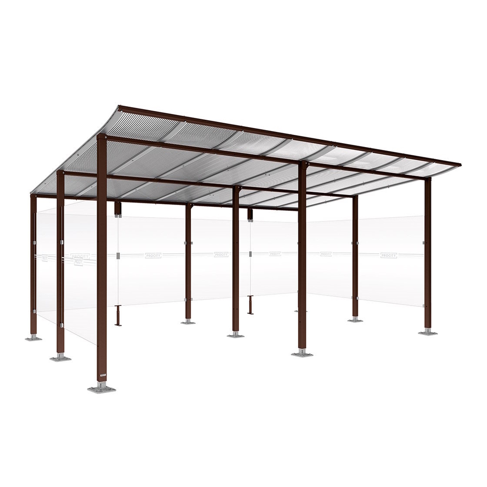 Abri vélos Modulo bardages en verre RAL8017 - initial + compl + bardages de fond et latéraux - Sur platines - Prof 3400mm - PROCITY - 599191.8017