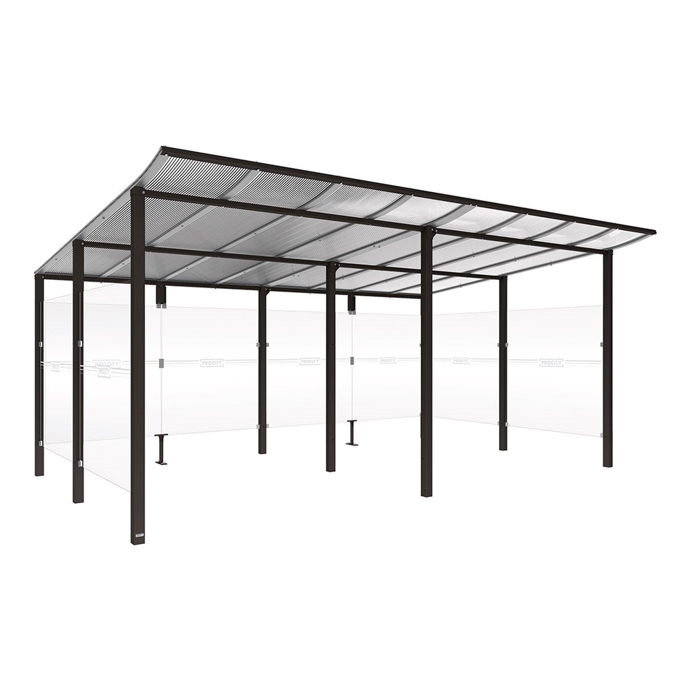 Abri vélos Modulo bardages en verre RAL9005 - initial + compl + bardages de fond et latéraux - Scellement direct - Prof 3400mm - PROCITY - 529191.9005