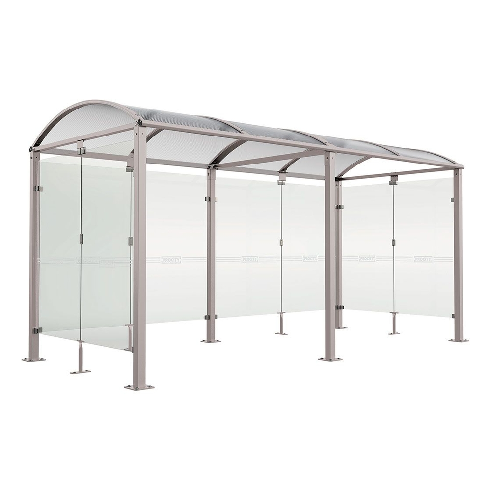 Abri vélos Voûte M bardages en verre RAL7044 - Tout-en-un Abri initial + 1 extension + bardages latéraux et de fond - Pieds fixes sur platines - PROCITY - 529023.7044